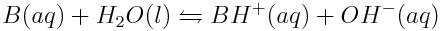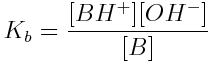 Similarly, the strength of a weak base is quantitatively expressed as base ionization constant (Kb), which indicates the extent of the ionization of a weak base in aqueous solution. The general form of the ionization of a base (B) in water is shown below: