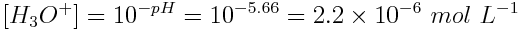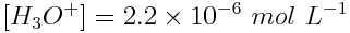 Using the pH of the solution, the equilibrium concentration of H3O+(aq) ions is: