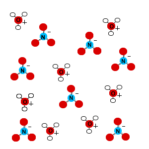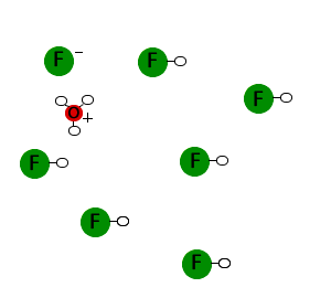 Understanding the molecular-level behavior of acids enables chemists to picture what happens when strong and weak acids ionize in water, including ocean water. Draw a solution containing nitric acid (HNO3, a strong acid) and a solution containing hydrofluoric acid (HF, a weak acid). Do not draw all the water molecules in solution.