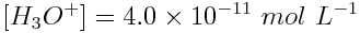 When [H3O+]=4.0×10-11 mol L-1,