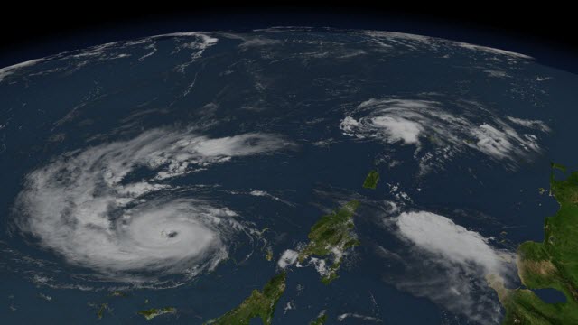 Also, recall that storms gain intensity by absorbing energy from the oceans. As the climate changes and the oceans absorb energy, storms are able to absorb more energy and become even more violent than before. This is one key reason why models of climate change predict that storms, like those shown below, will become more violent and more damaging.